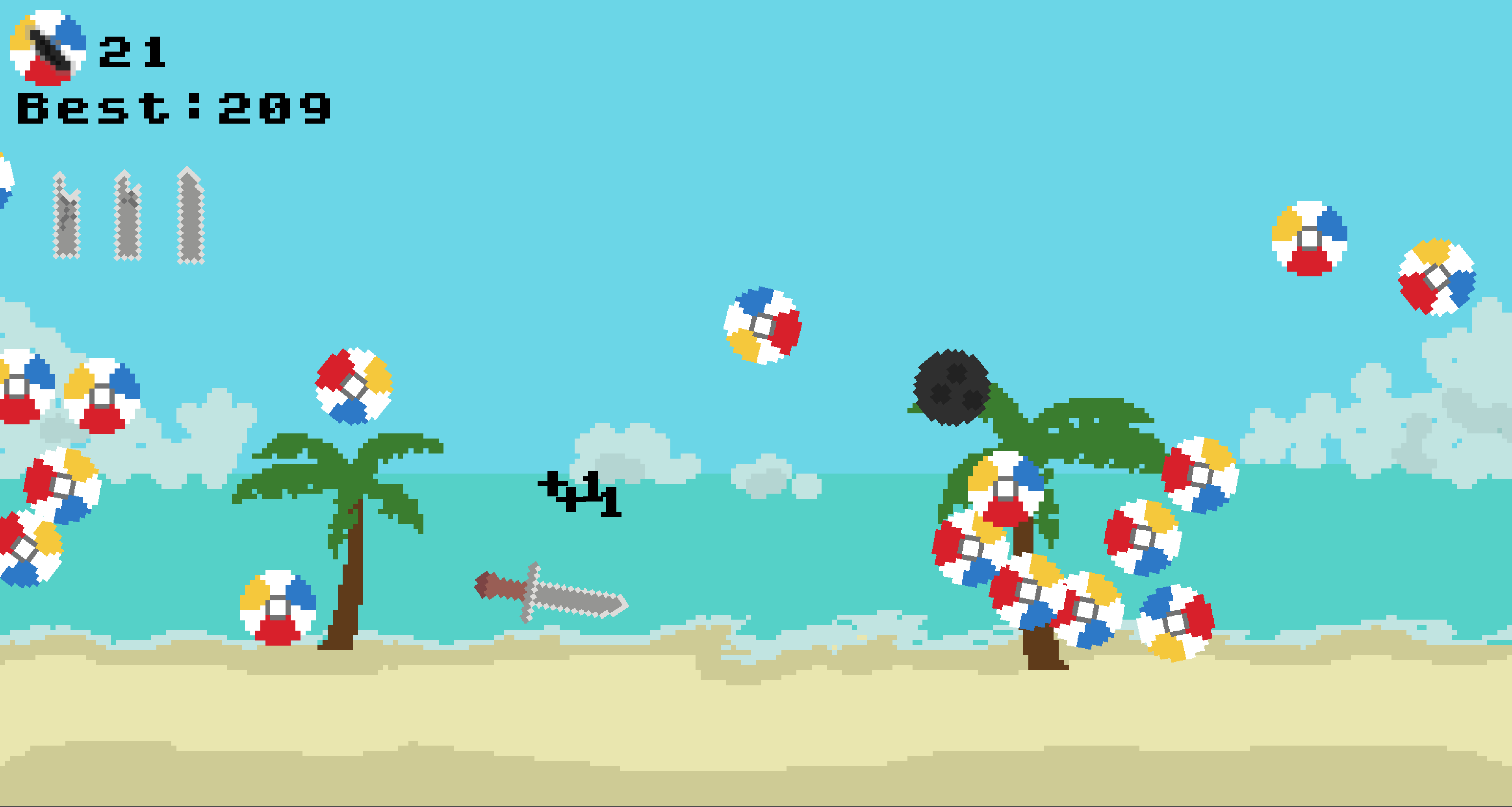 You have three lives, Hitting bowling balls(the black balls) will make you lose a life